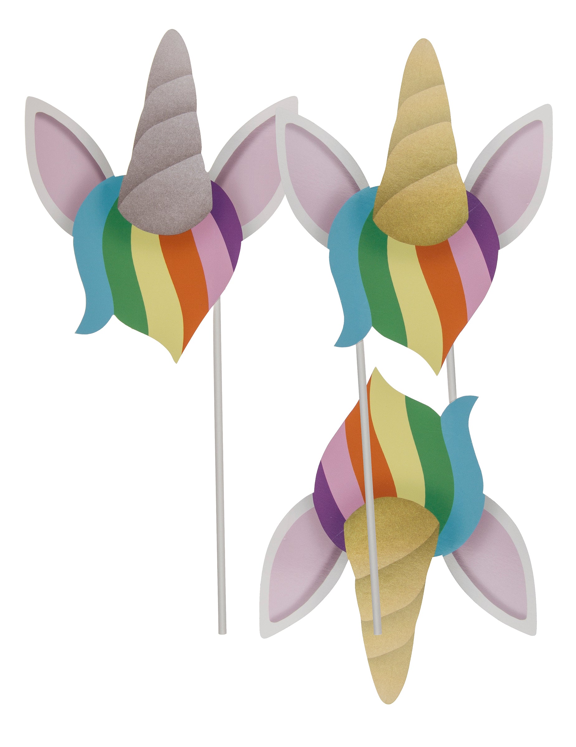 Compusă din 12 articole festive portabile, aceasta kit cabină foto cu unicorn transformă fiecare fotografie într-un moment fermecător. Coarne aurii, măști asemănătoare unor creaturi fabuloase, fundițe colorate și stele strălucitoare se combină pentru a crea o serie de accesorii cu un farmec de basm.
