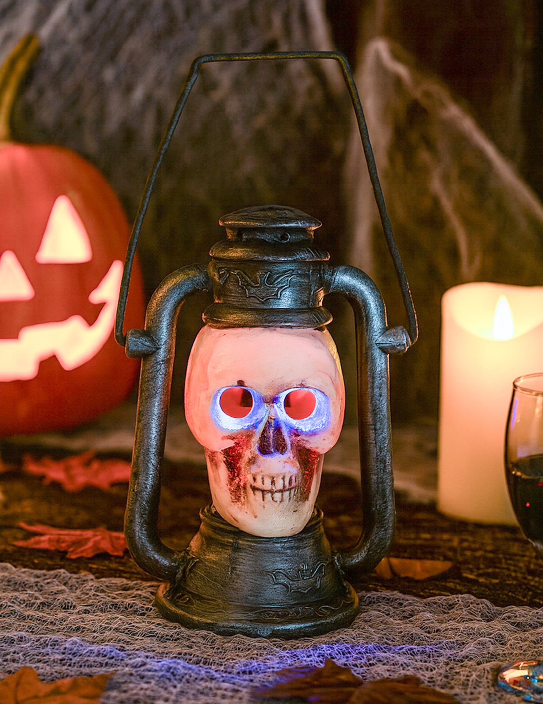 Aduceți o ambianță înfricoșătoare la decorul dvs. cu acest felinar de craniu proiectat realist. Craniul său înfricoșător se aprinde în 3 culori care se schimbă, creând un efect misterios și înfiorător. Practic și ușor, este transportat cu ușurință datorită mânerului său și măsoară aproximativ 26 x 18 cm. Ideal pentru a însoți o decorare a casei bântuite, o grădină de Halloween sau pentru a finaliza o deghizare înfricoșătoare.