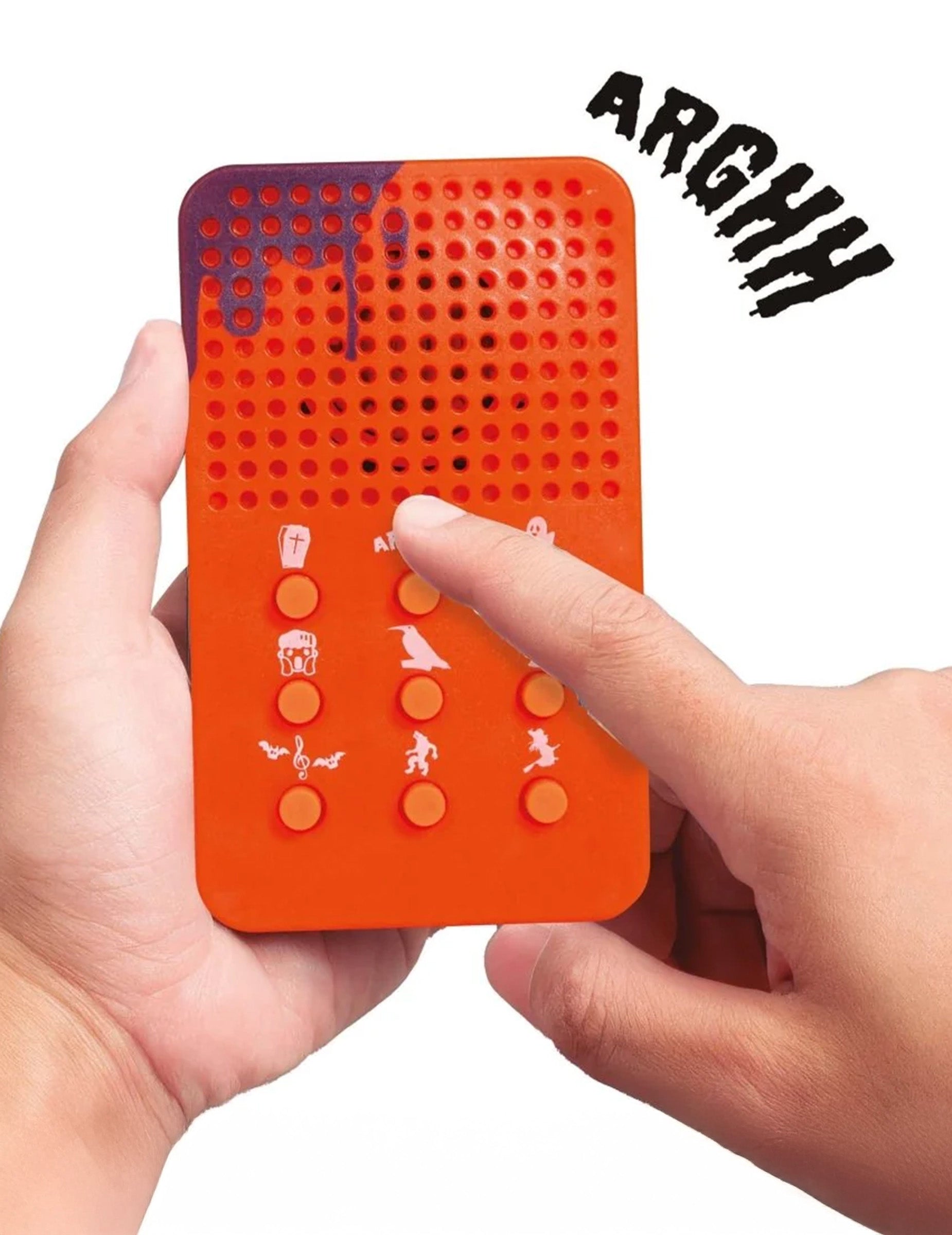 Cette machine à sons effrayants est parfaite pour créer une atmosphère terrifiante en un geste. Grâce à ses 9 boutons sonores, elle déclenche instantanément des cris, hurlements ou bruits de créatures inquiétantes. Facile à utiliser, il suffit d’appuyer pour entendre un son glaçant : fantômes, monstres ou portes grinçantes s’invitent dans votre mise en scène. Compacte, elle se glisse facilement dans une poche ou dans la main pour un usage mobile. Un petit accessoire redoutable pour plonger vos invités dans une ambiance d’épouvante lors d'halloween.
