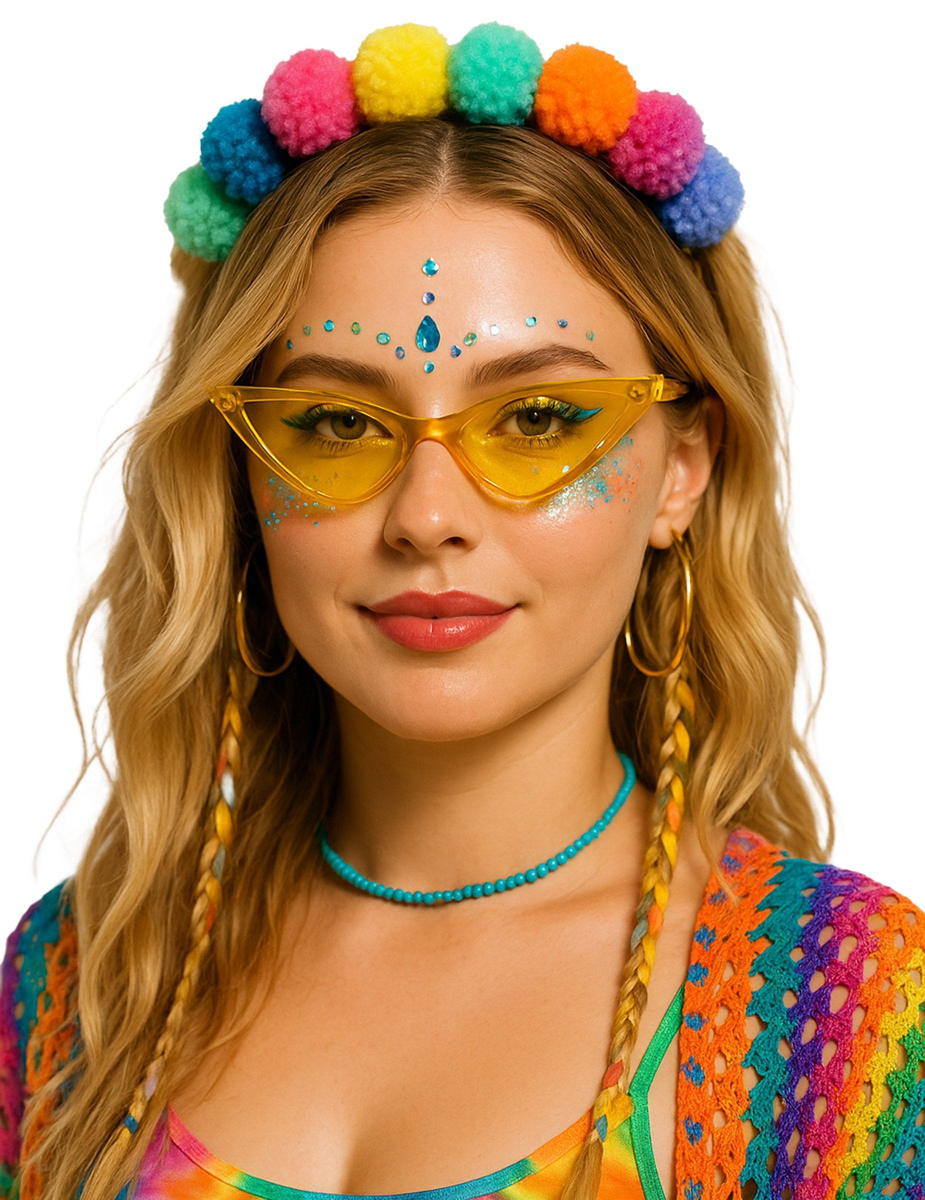 Stilul lor retro aduce o notă originală și colorată, ideală pentru a completa un costum disco, o ținută hippie sau pur și simplu pentru a adăuga un strop de fantezie look-ului tău.