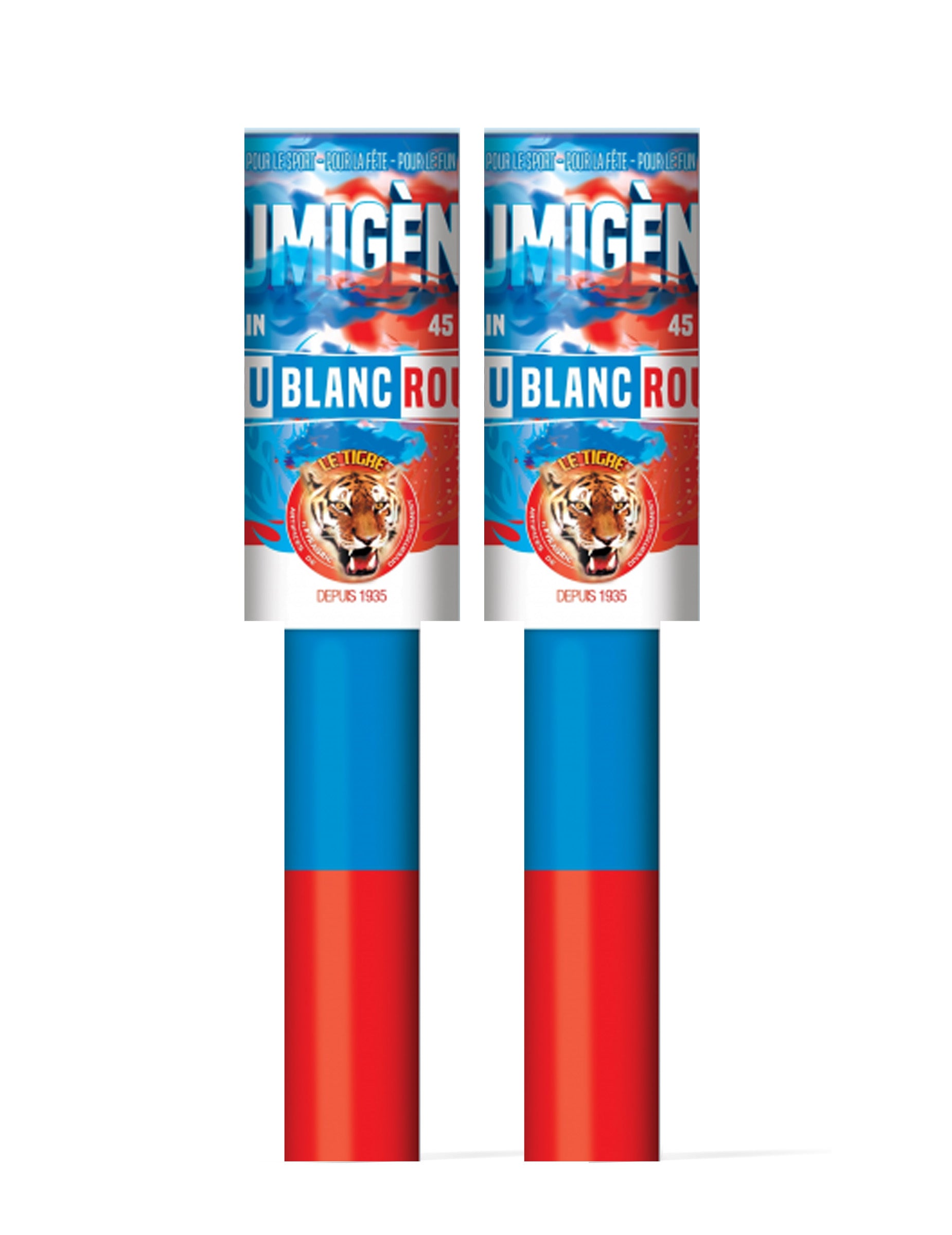 Ce lot de deux fumigènes manuels tricolores libère une fumée bleue, blanche et rouge pendant environ 45 secondes chacun, enchaînant les trois couleurs pour un effet visuel fort et symbolique. Parfaits pour le 14 juillet, une rencontre sportive, un rassemblement festif ou une animation de rue, ils permettent d’afficher fièrement les couleurs du drapeau français dans une ambiance festive. Conçus pour être tenus en main, ces fumigènes offrent une grande liberté de mouvement et un contrôle précis de la diffusion, pratiques pour accompagner une marche, une vidéo ou toute mise en scène mobile. Mise en route simple : retirez le capuchon de sécurité, puis allumez la mèche pour activer la fumée. utiliser exclusivement à l’extérieur, dans un lieu bien ventilé. Normes : CE / NF Catégorie : T1 (l'utilisation du fumigène est exclusivement réservée aux personnes majeures). En achetant ce produit, vous certifiez avoir plus de 18 ans. La mise en œuvre du fumigène torche exige le respect des précautions décrites dans la notice d'emploi.