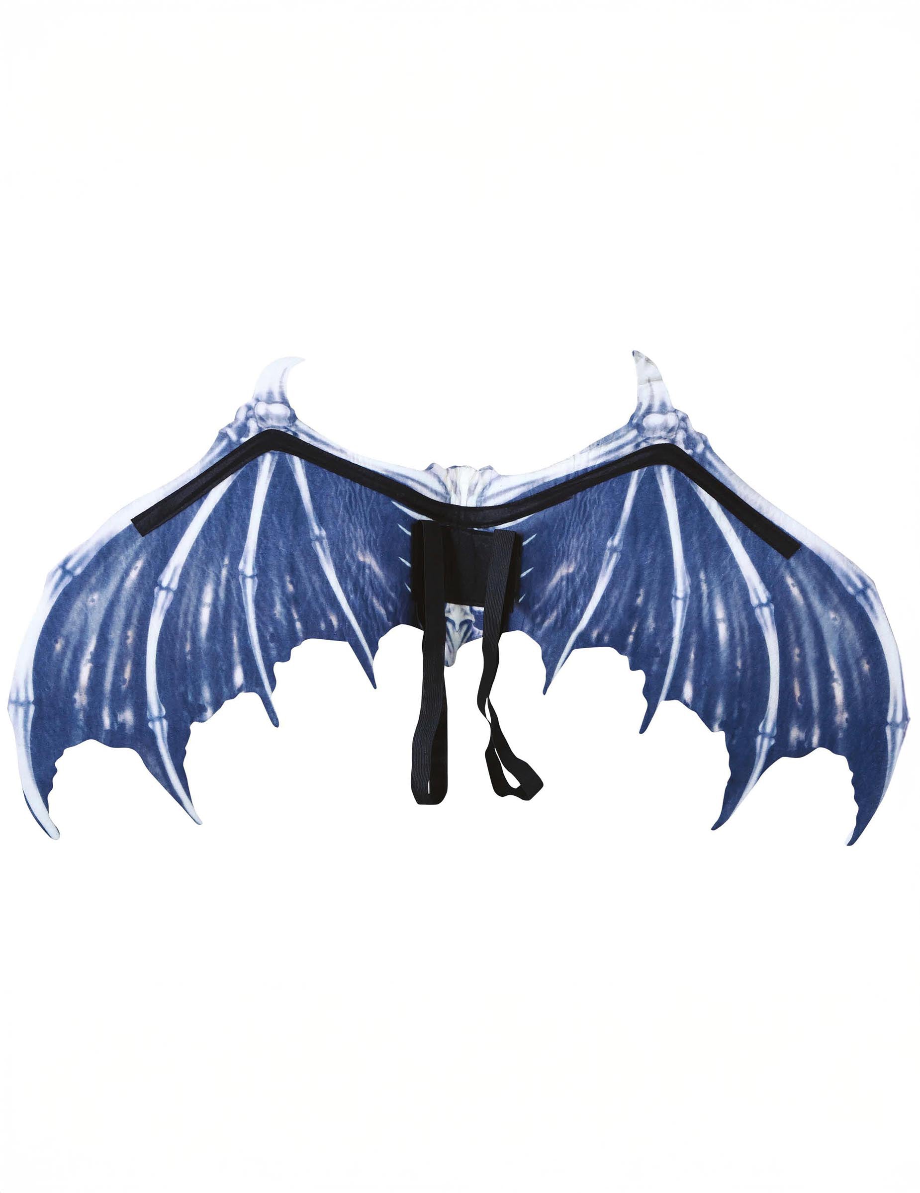 Aceste aripi de liliac pentru adulți măsoară aproximativ 80 x 40 cm. Confecționate din material textil, sunt negre cu un imprimeu ce reprezintă un schelet de liliac.