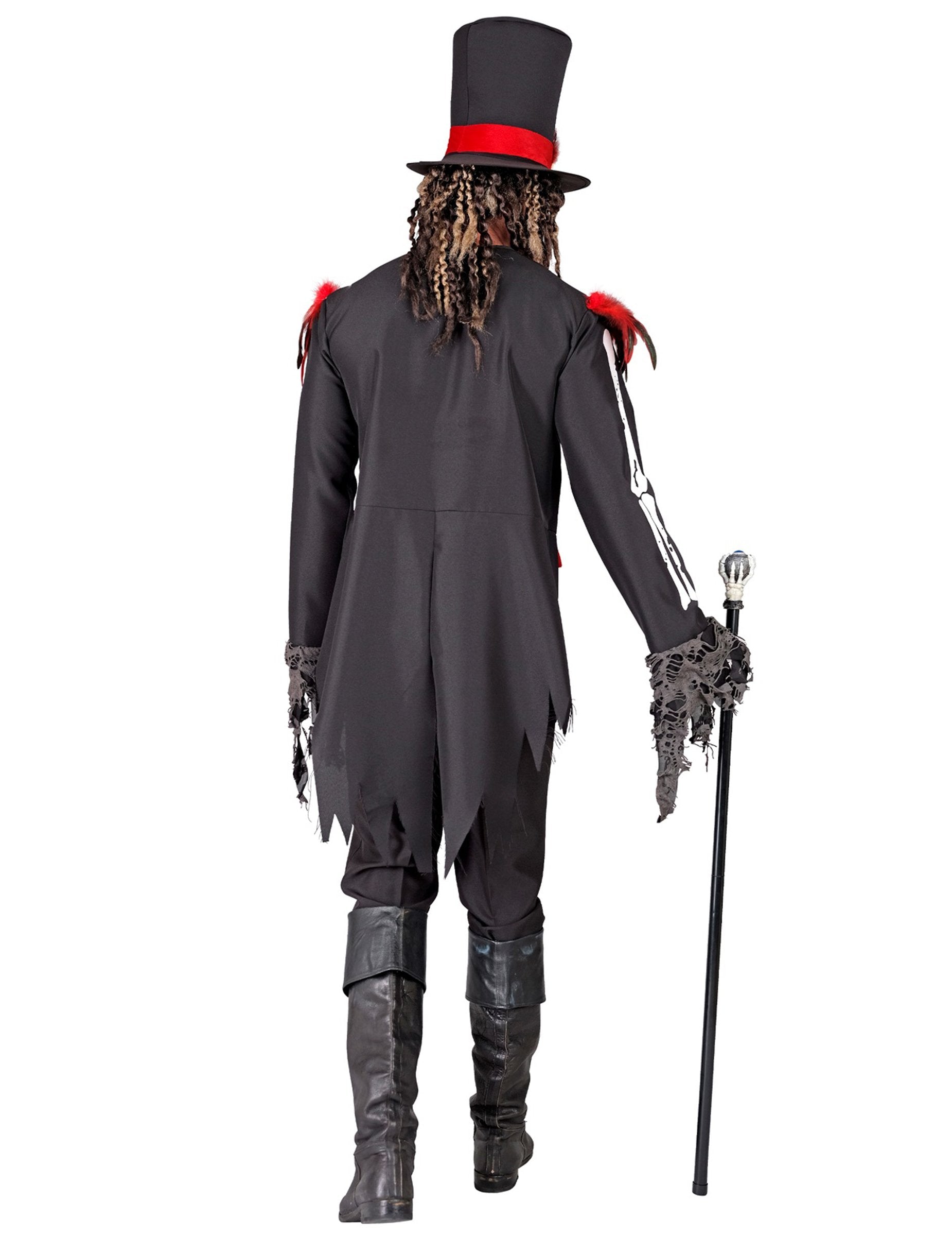 Ideal pentru Halloween, o petrecere tematică voodoo sau carnaval, acest costum garantează o prezență impresionantă și de neuitat.