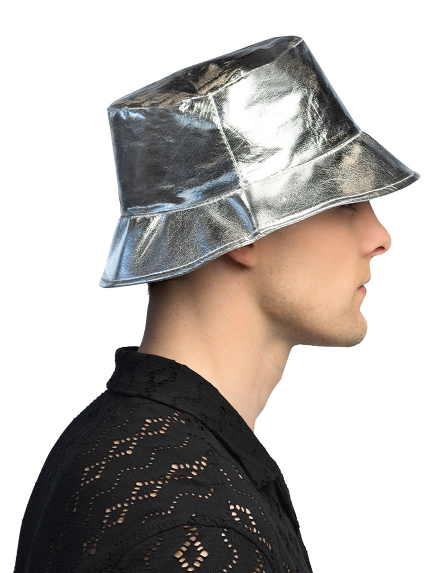 Această pălărie tip găleată argintie metalică este accesoriul perfect pentru a ieși în evidență. Versatil și original, se potrivește atât cu costumele retro, cât și cu cele futuriste, sau pur și simplu cu o ținută excentrică pentru Halloween, carnaval sau un festival. Strălucirea sa unică te va face vedeta serii.