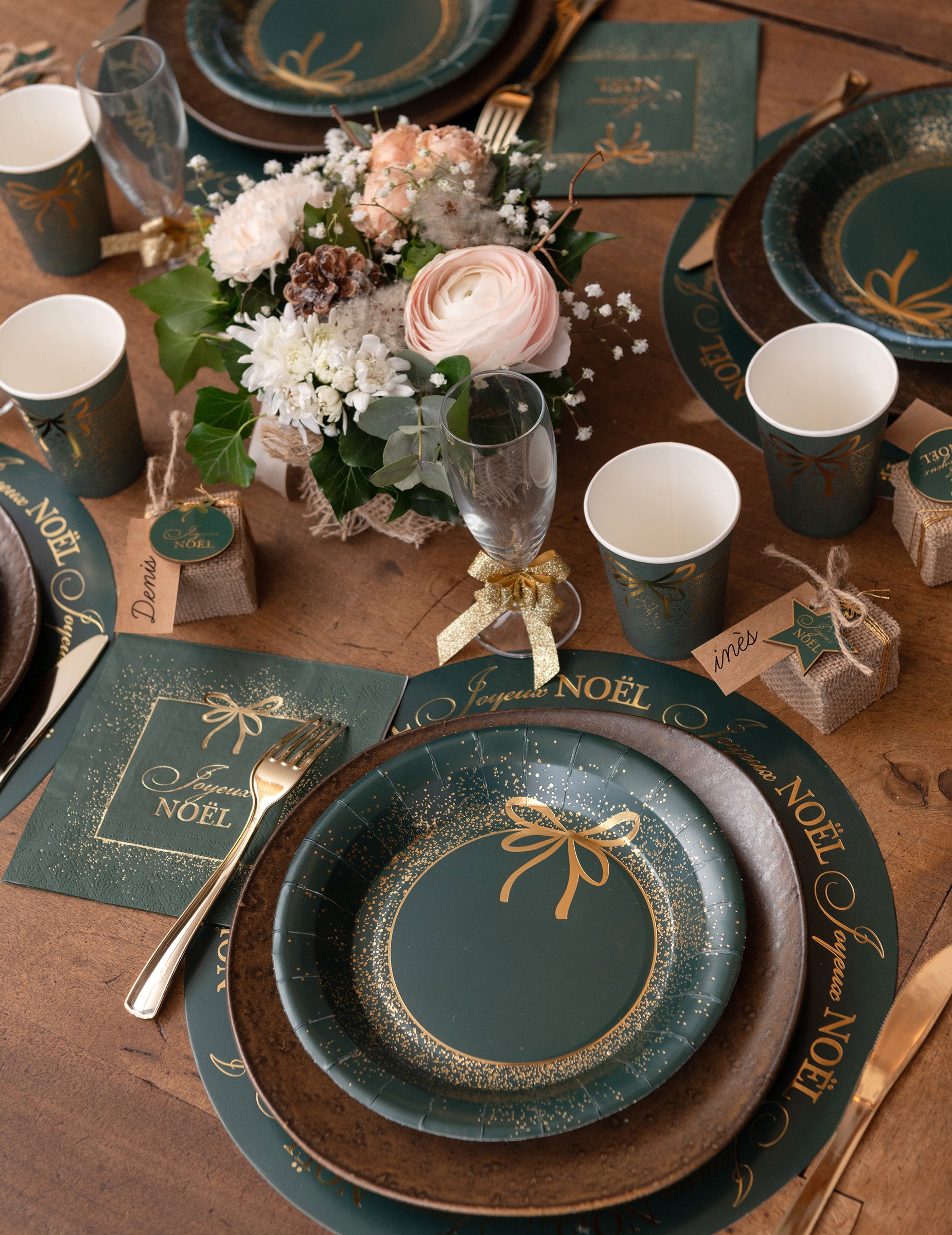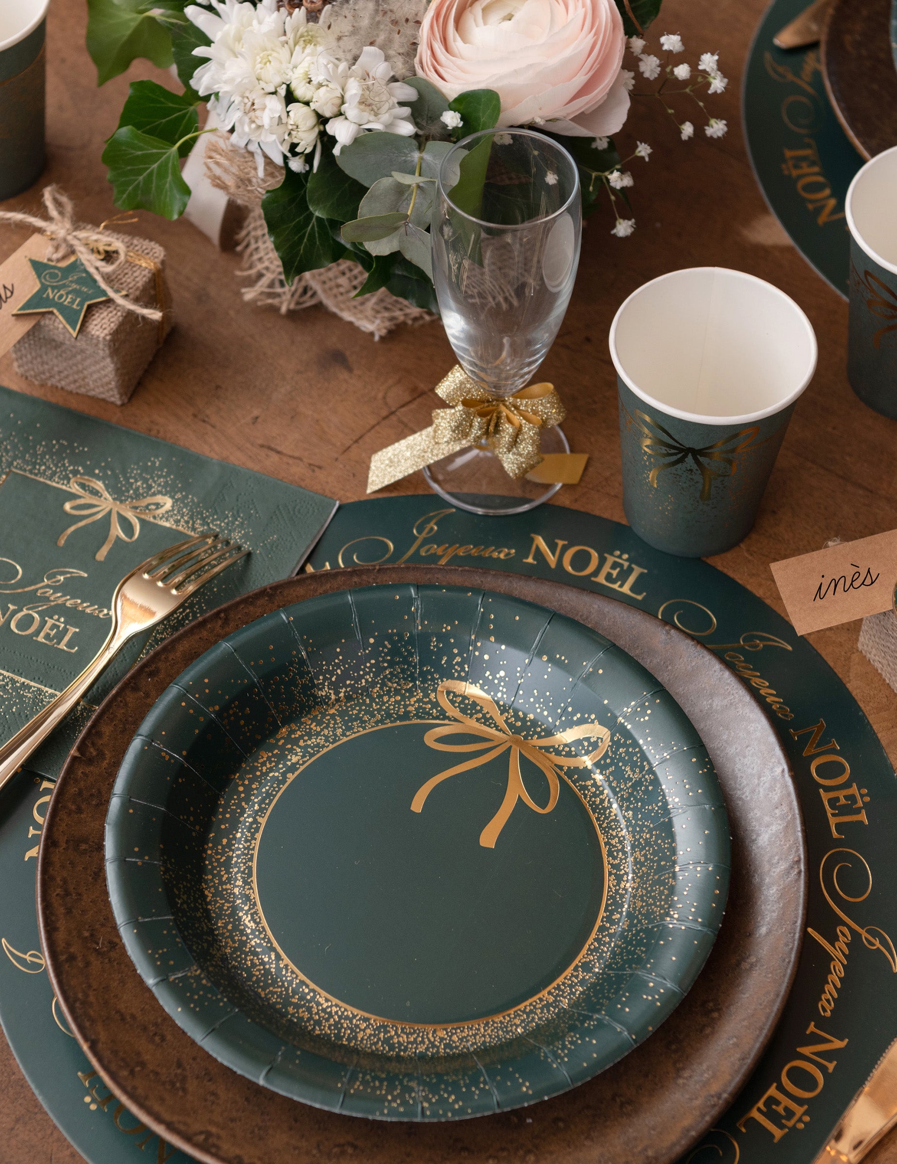 10 farfurii de hârtie de Crăciun verzi și aurii 23 cm design elegant