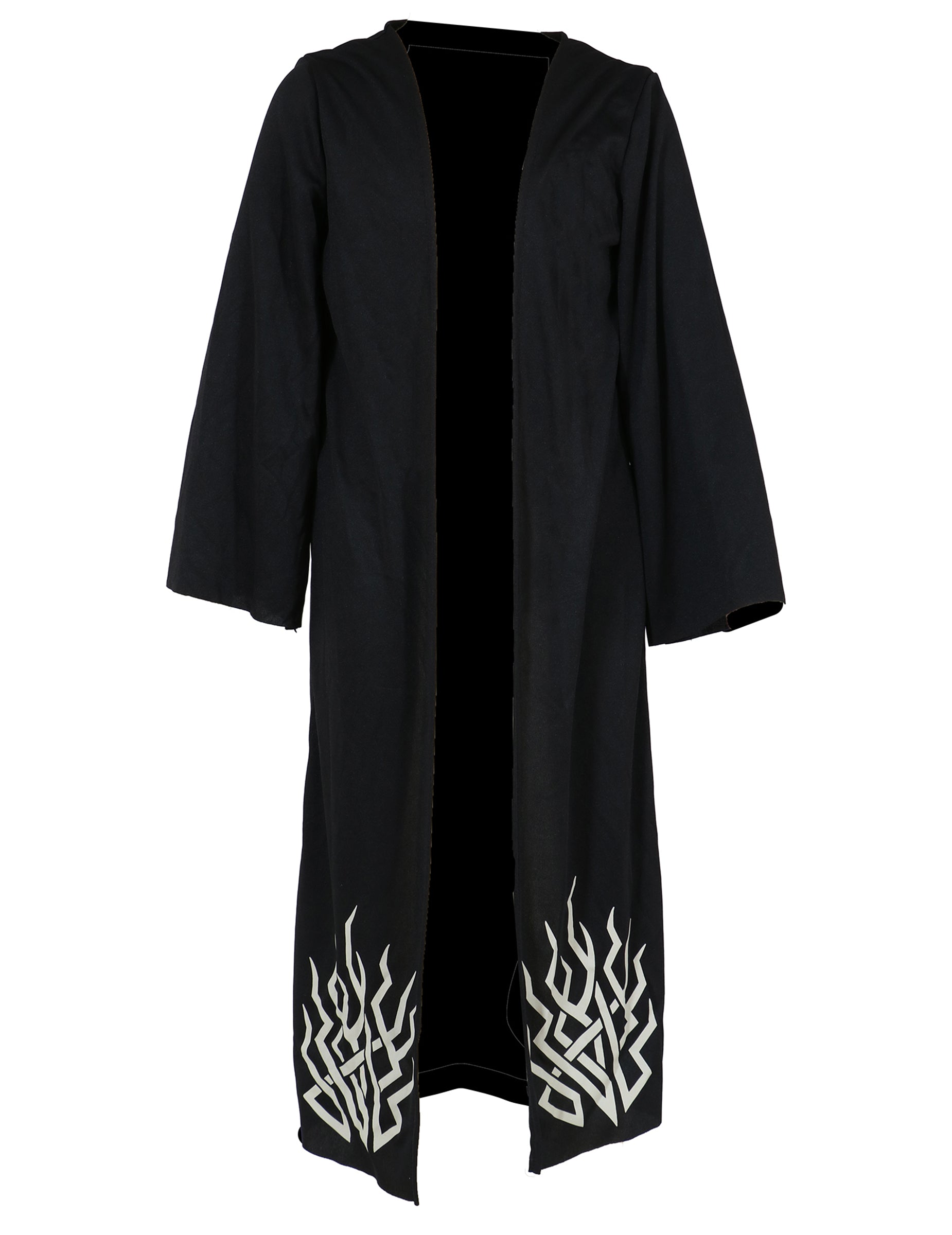 Compus dintr-un palton lung negru, decorat cu motive gri în flăcări, evocă puterea și întunericul unei ființe supranaturale. Topul vapuros se asortează cu o pantalon în ton, pentru o siluetă dreaptă și neliniștitoare. O centură roșie strălucitoare evidențiază talia și contrastează cu ansamblul întunecat, în timp ce pălăria largă tradițională completează acest look inspirat de demonii legendari întâlniți în anumite creații din K-Pop-ul modern.