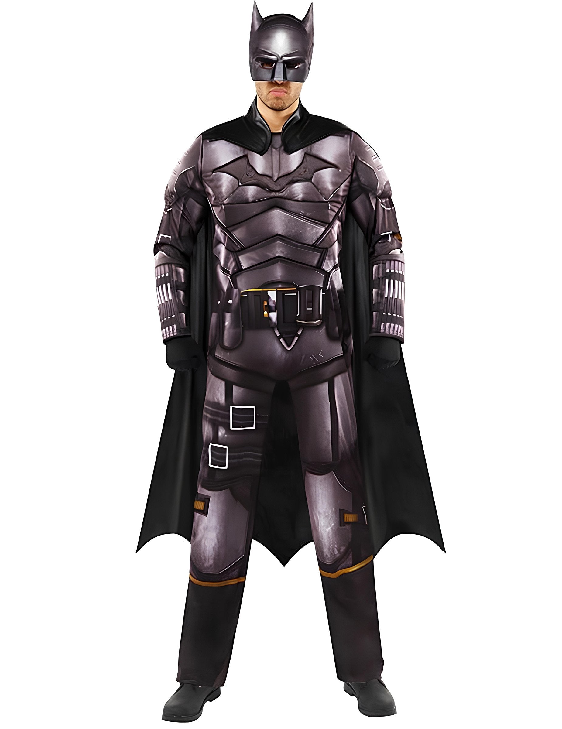 Acest costum deluxe de Batman pentru bărbați oferă un aspect impresionant datorită salopetei imprimate cu un efect de armură detaliat, care amintește de echipamentul eroului. Culoarea închisă și finisajele metalice creează un aspect puternic și autentic. Pelerina lejeră adaugă mișcare ținutei, iar masca asortată completează aspectul misterios al Cavalerului Întunecat. Un costum perfect pentru a-l întruchipa pe faimosul justițiar la o petrecere costumată sau la un eveniment eroic.