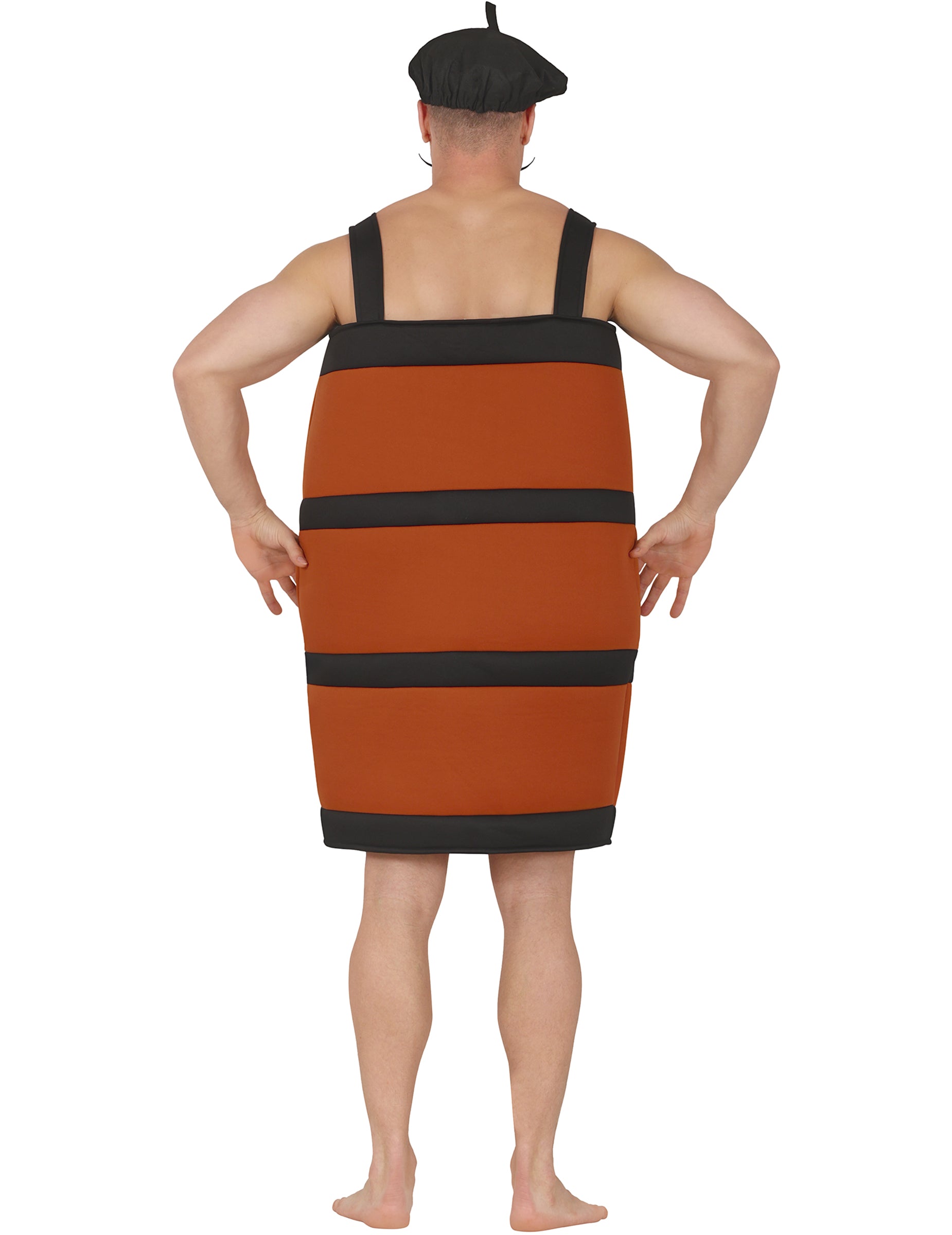 Acest costum butoi de vin amuzant pentru adulți este ideal pentru a aduce o notă de convivialitate petrecerilor tale. Cu forma sa de butoi maro cu cercuri negre și dopuri false argintii, evocă universul vinului cu umor și originalitate.