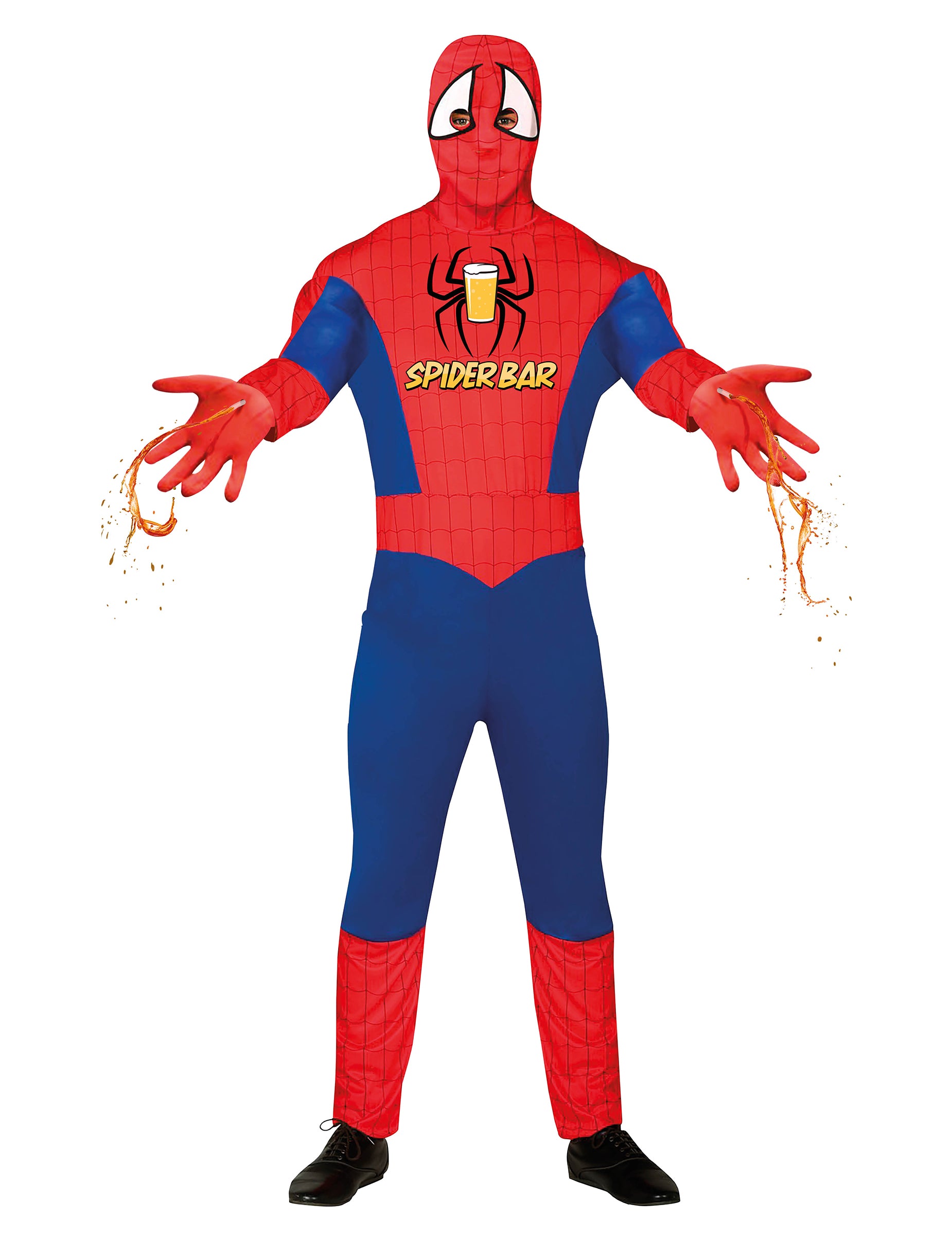 Acest costum Spiderbar cu lansator de lichid pentru adulți reinterpretează faimosul om-păianjen cu umor. Pe piept, inscripția Spider Bar anunță tonul, în timp ce lansatorul integrat adaugă o notă originală și interactivă acestui costum plin de autoironie.