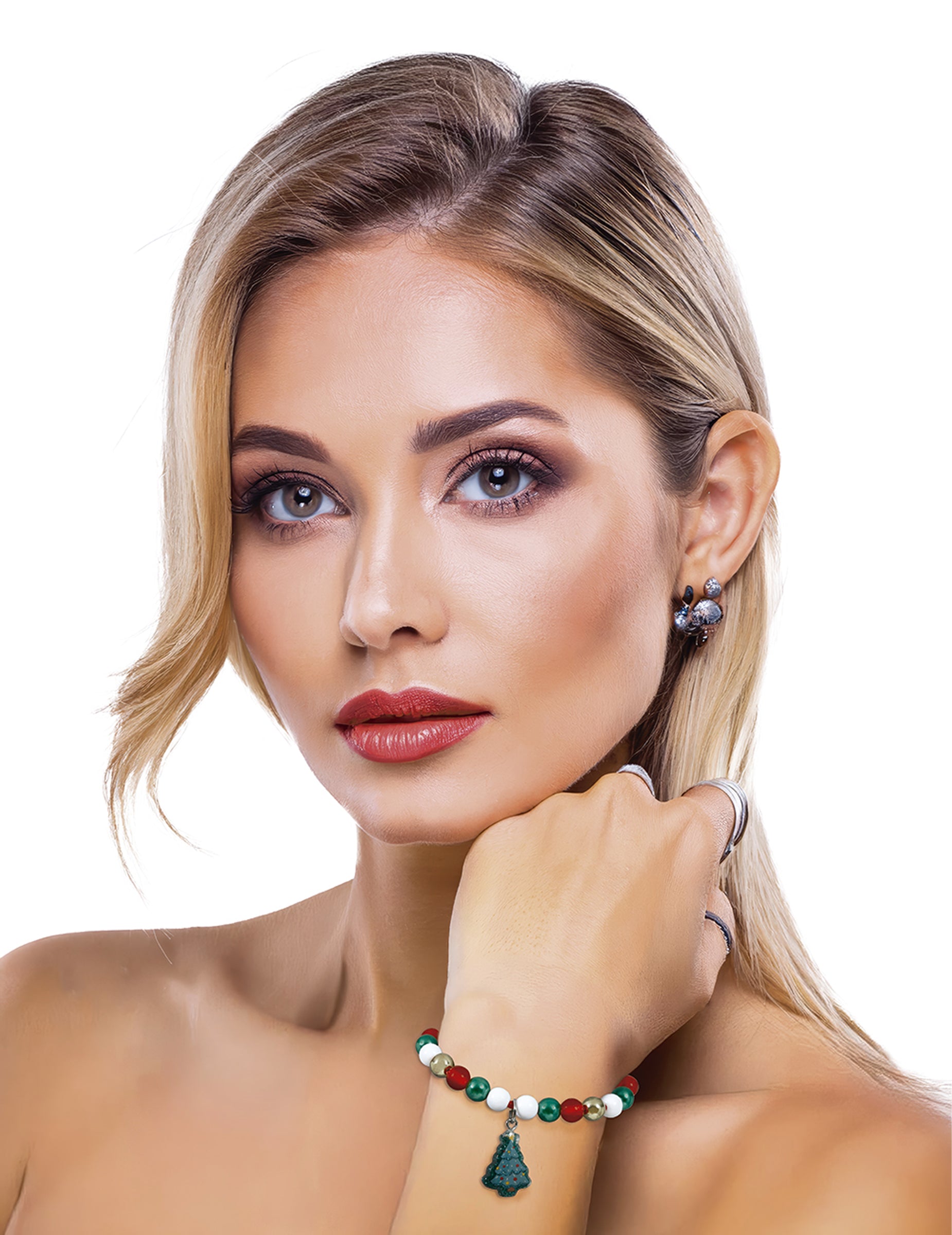 Această brățară în formă de brad de Crăciun este accesoriul perfect pentru a completa ținuta festivă. Fabricată din mărgele roșii, verzi, albe și aurii, are un mic pandantiv în formă de brad decorat, pentru o notă veselă și colorată. Montată pe un șnur roșu reglabil, se potrivește cu ușurință tuturor dimensiunilor încheieturii mâinii. Perfectă pentru a adăuga o notă luminoasă și distractivă sărbătorilor de Crăciun, fie acasă, la birou sau în timpul unei mese festive.
