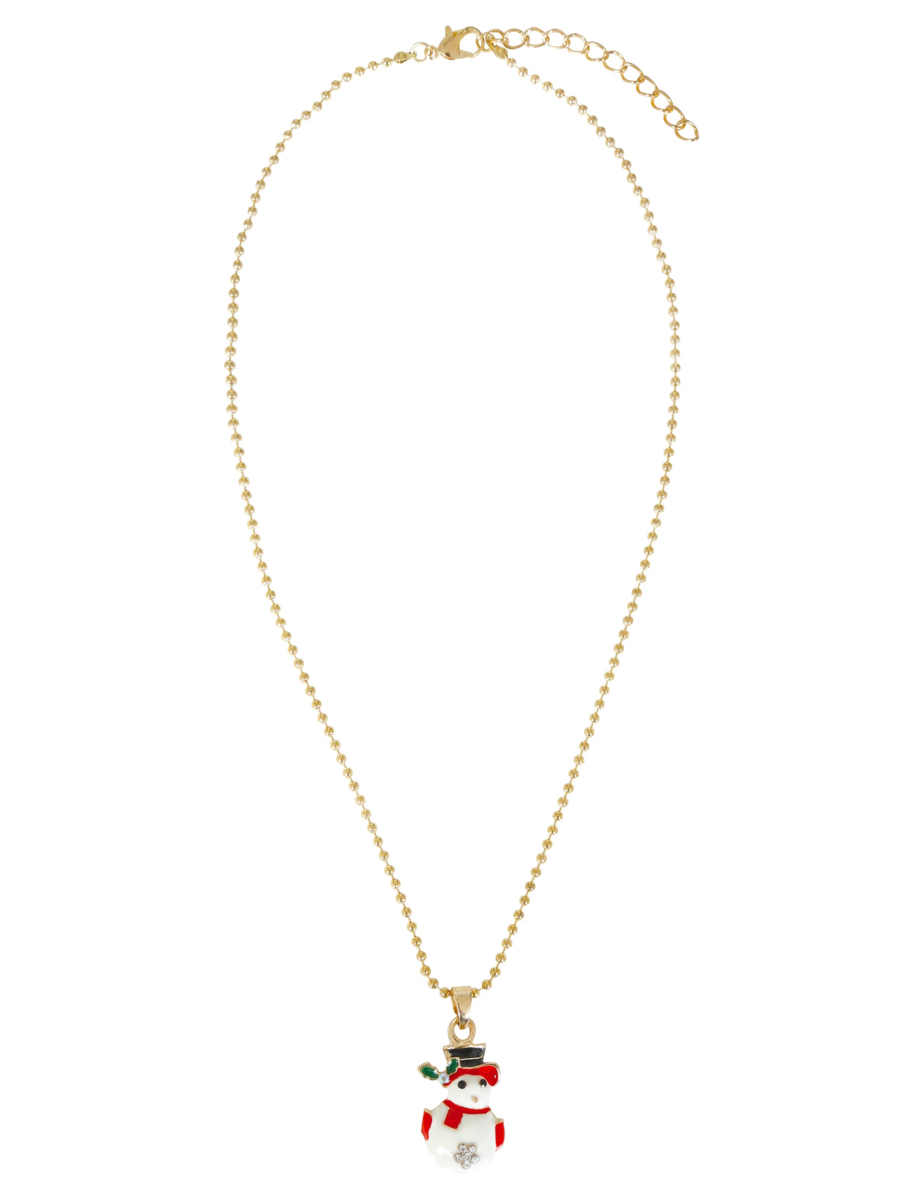 Acest colier cu pandantiv de Crăciun, cu un om de zăpadă, adaugă o notă de veselie de iarnă ținutei tale. Suspendat de un lanț delicat de aur, pandantivul prezintă un adorabil om de zăpadă cu o pălărie neagră, o eșarfă roșie și detalii strălucitoare aurii. Designul său elegant și festiv completează atât ținutele formale de seară, cât și ținutele casual de Crăciun. O bijuterie încântătoare și jucăușă, perfectă pentru a răspândi magia sărbătorilor cu stil.