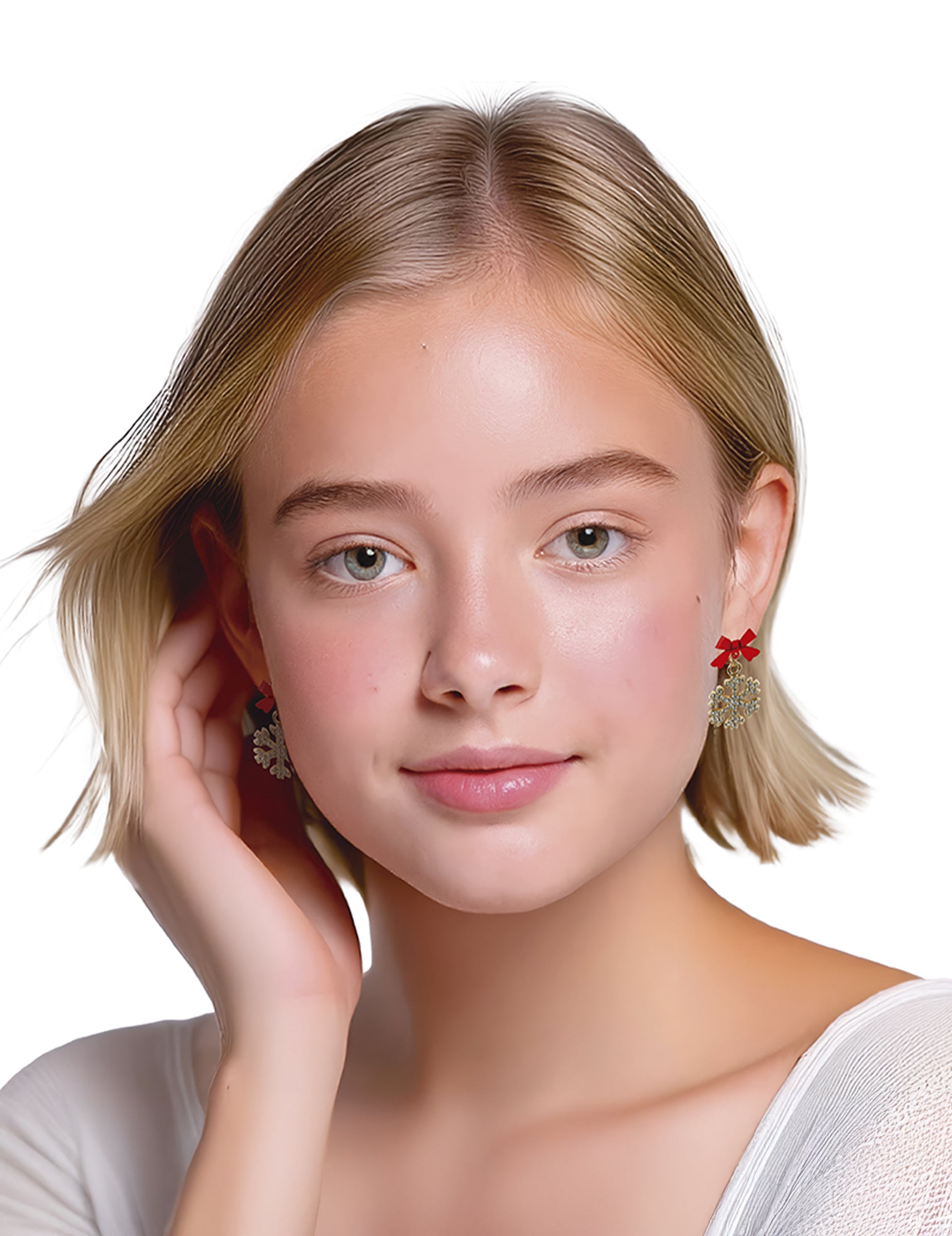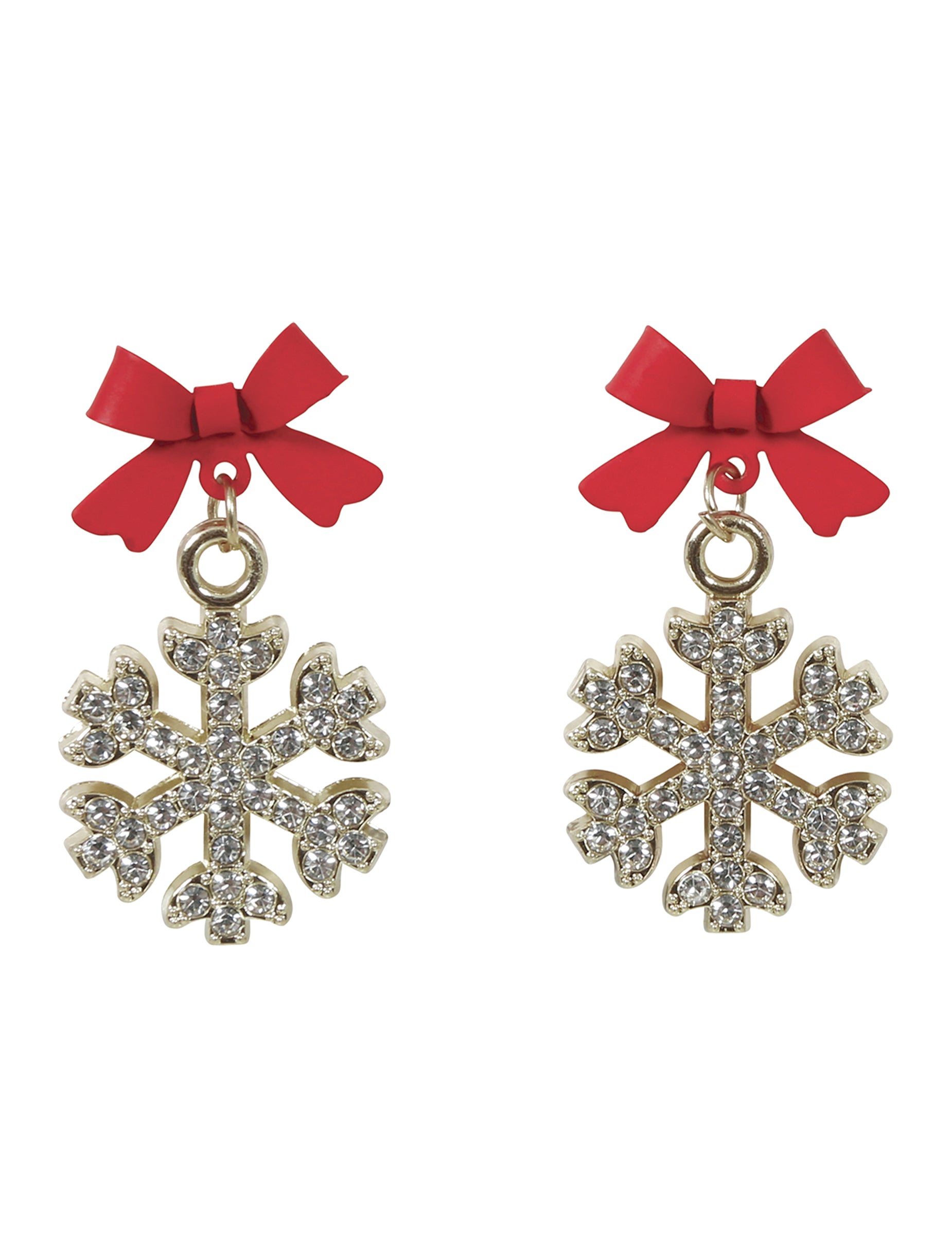 Acești cercei metalici strălucitori în formă de fulg de nea adaugă o notă elegantă și strălucitoare ținutelor tale festive. Fiecare fulg de nea auriu este împodobit cu o fundă roșie, evocând magia Crăciunului și luminându-ți delicat fața. Ușori și confortabili, pot fi purtați cu ușurință pe tot parcursul zilei sau pentru o seară festivă. O bijuterie perfectă pentru a-ți completa stilul de Crăciun cu rafinament și originalitate.