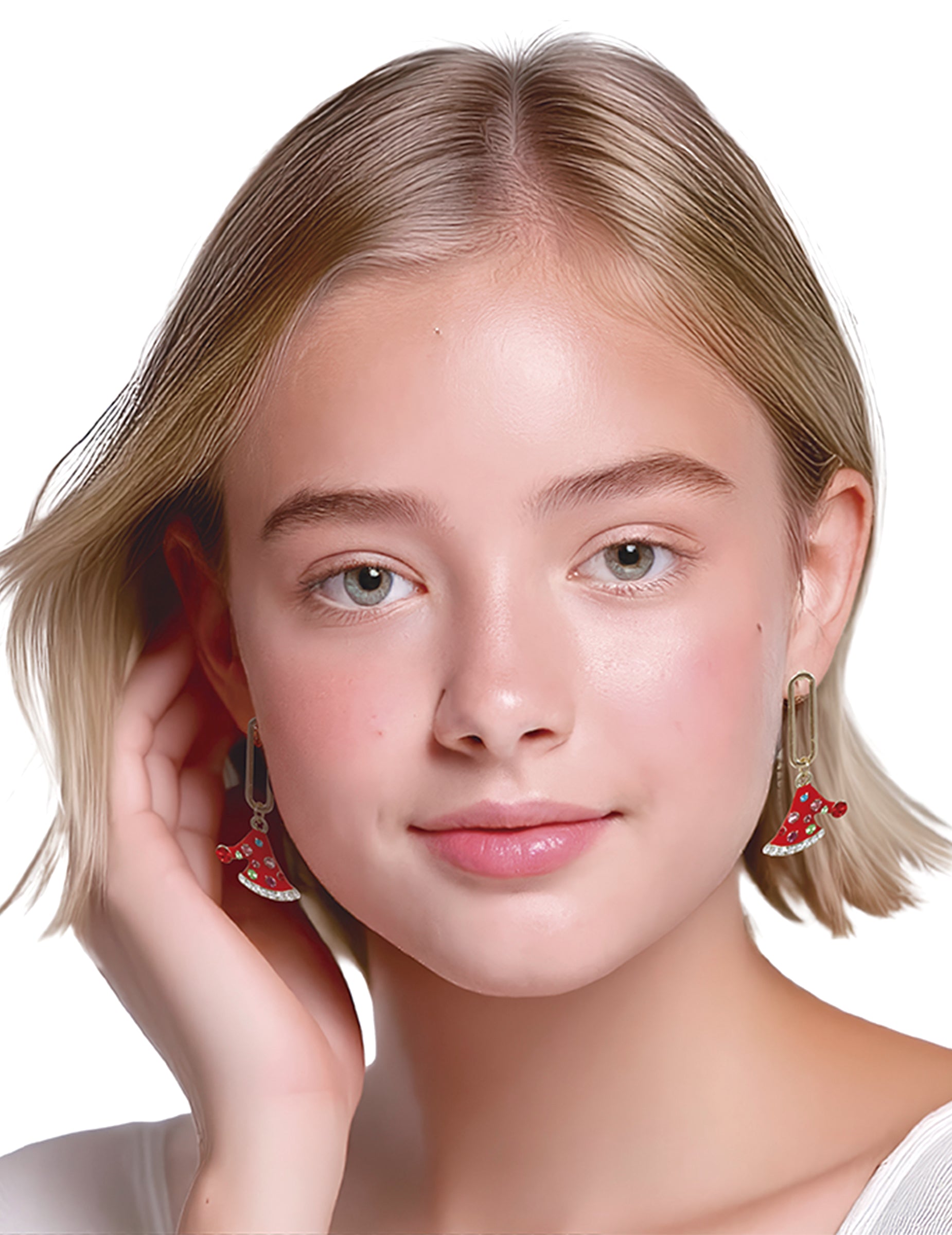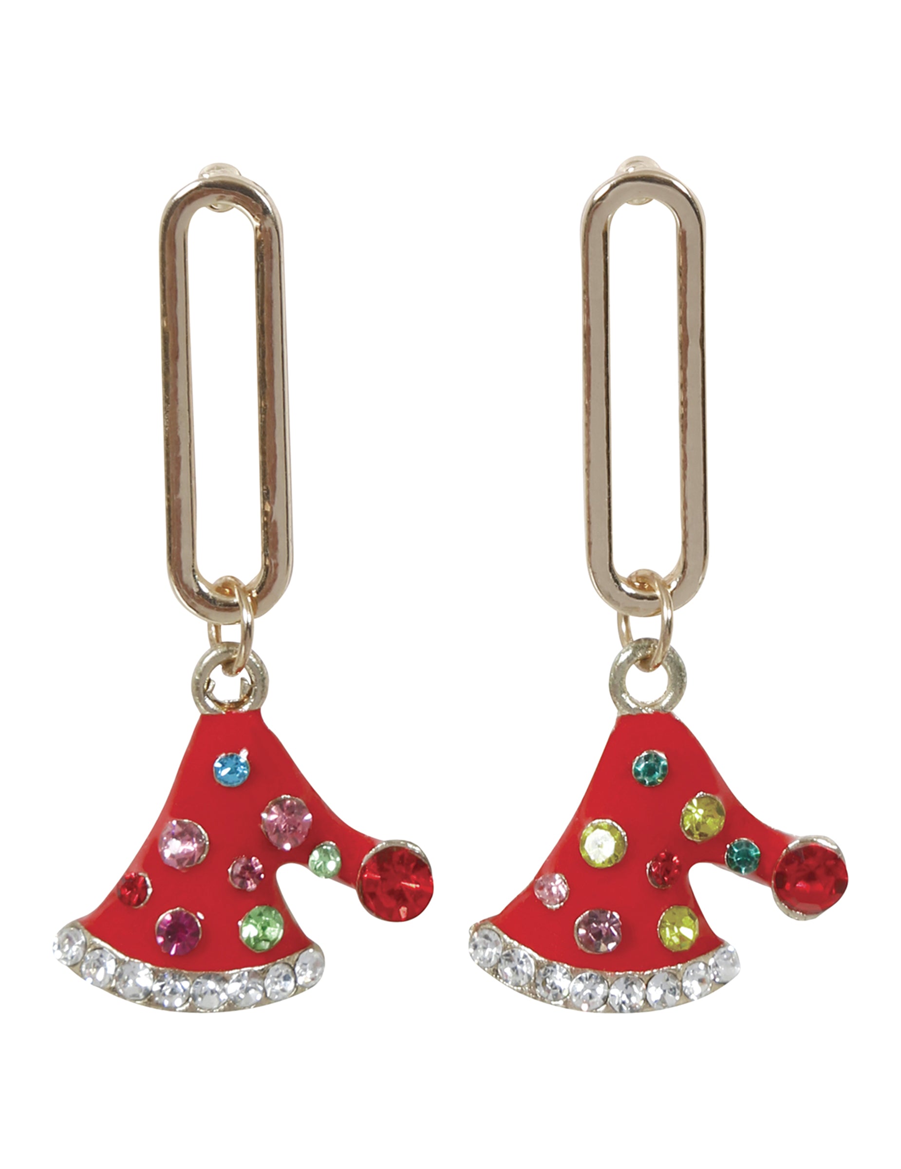 Acești cercei metalici cu pălării de Crăciun îți înveselesc ținuta cu o notă de umor și eleganță. Fiecare cercel prezintă o mică pălărie roșie împodobită cu alb, un simbol esențial al sezonului sărbătorilor. Ușori și confortabili, sunt ușor de purtat și perfecți pentru a completa o ținută de Crăciun, fie că este vorba de o masă, o ieșire în oraș sau o sărbătoare cu prietenii. Un accesoriu ideal pentru a străluci cu umor și fantezie.