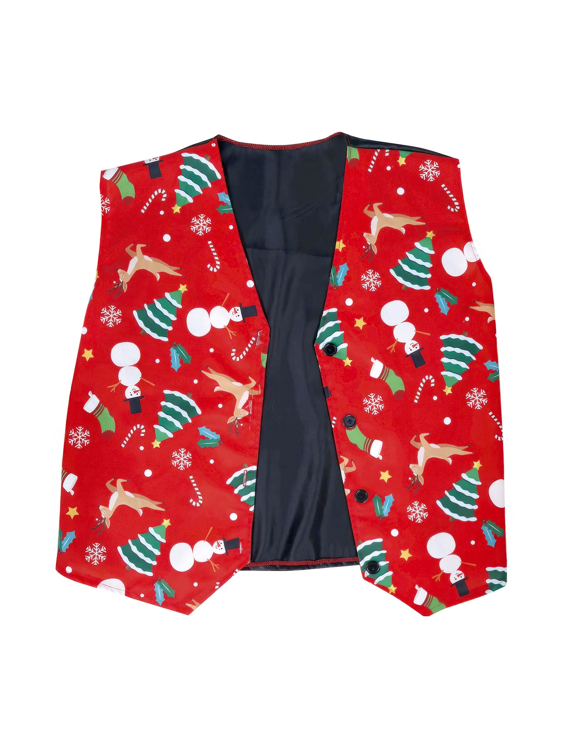 Acest cardigan roșu cu tematică de Crăciun pentru adulți este alegerea perfectă pentru a adăuga o notă de eleganță festivă. Împodobit cu motive colorate de brazi, reni, fulgi de zăpadă și dulciuri, aduce o notă fantezistă ținutei tale de sărbători. Croiul clasic și închiderea cu nasturi îl fac ușor de purtat peste o cămașă, pentru un look elegant și distractiv în același timp. Perfect pentru o cină de Crăciun, o seară cu prietenii sau o atmosferă relaxată la birou.