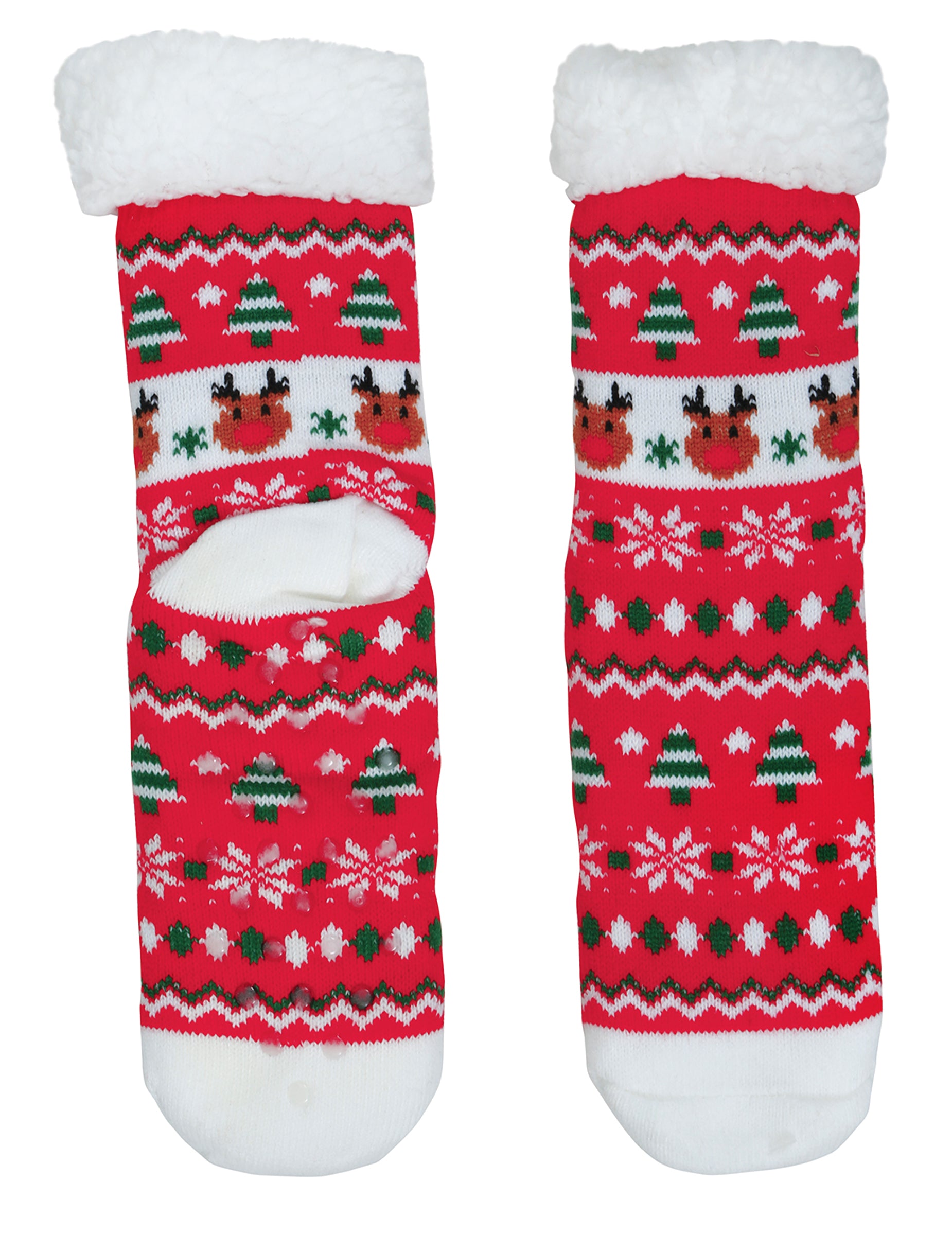 Aceste șosete termice de Crăciun cu reni roșii pentru adulți combină căldura și veselia festivă. Împodobite cu motive cu reni, brazi și fulgi de zăpadă, acestea prezintă culorile emblematice ale sezonului pentru un aspect vesel. Interiorul moale și garnitura albă din blană artificială oferă un confort irezistibil, perfecte pentru relaxarea lângă foc în timpul sărbătorilor.