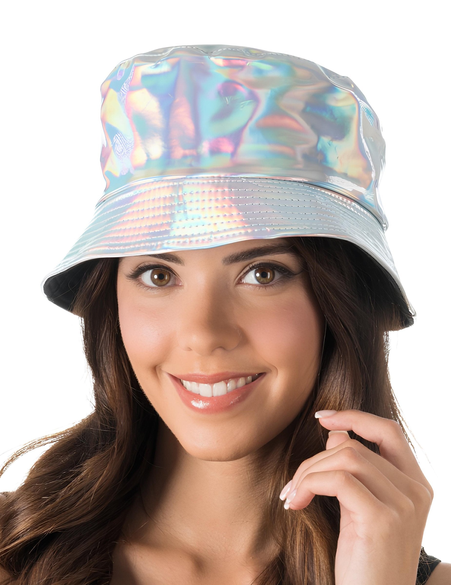 Acest bob irizat argintiu pentru adulți aduce o culoare luminoasă și un efect strălucitor care atrage imediat atenția. Nuanța sa argintie cu reflexii schimbătoare oferă un stil modern, perfect pentru festivaluri, petreceri de vară și petreceri de burlaci sau burlăcițe. Forma sa flexibilă protejează de soare, rămânând plăcut de purtat pe tot parcursul zilei. Un accesoriu simplu care adaugă cu ușurință o notă strălucitoare unei ținute de vară.