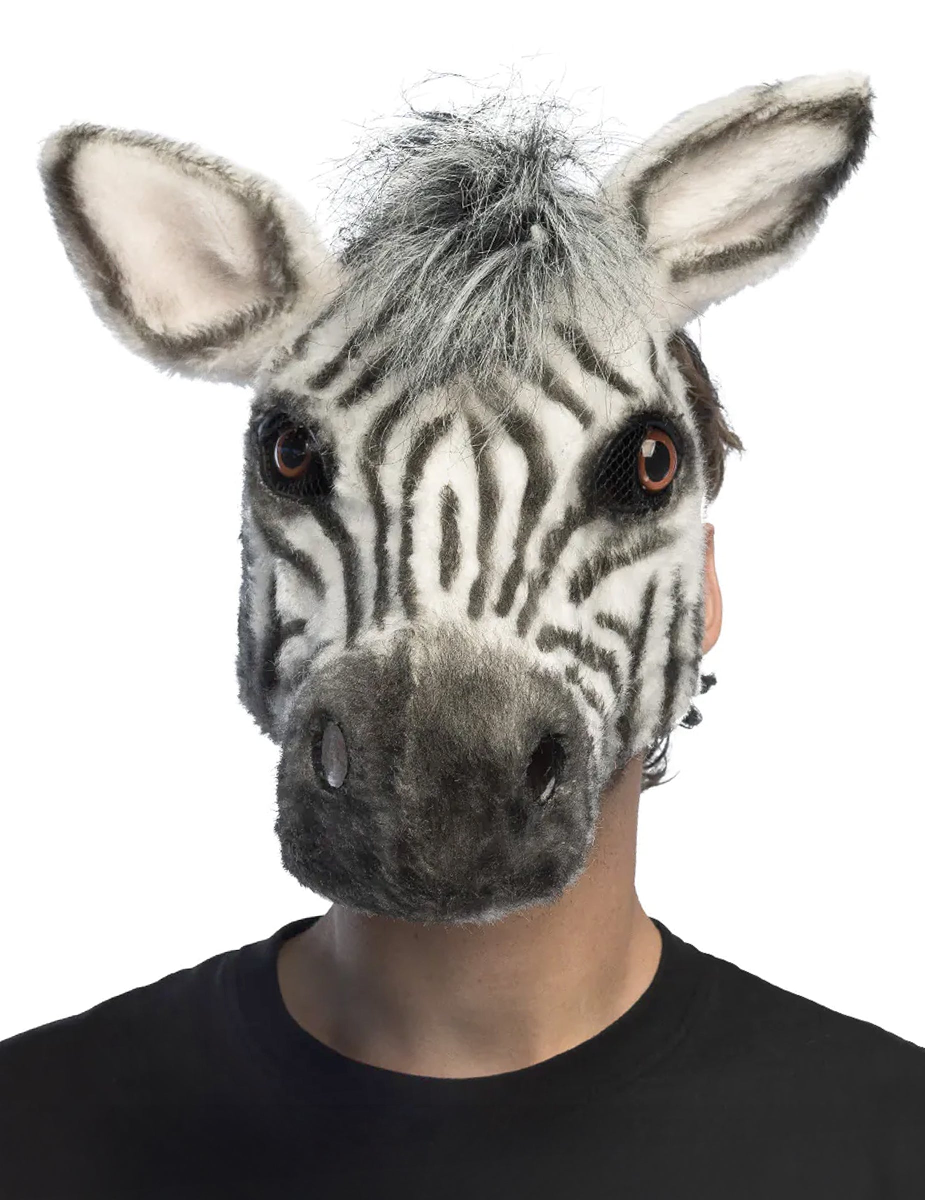 Acest Demi-mască din pluș zebră pentru adulți oferă un stil imediat recognoscibil datorită dungilor sale contrastante și botului lat. Acoperită cu pluș moale, prezintă urechi ridicate și o coamă ciufulită care accentuează aspectul animalic. O zonă discretă din plasă la nivelul ochilor permite o vizibilitate confortabilă, păstrând totodată aspectul de mască completă. Ușoară și plăcută la purtare, conferă o identitate de zebră pronunțată pentru carnaval sau petreceri tematice cu costume de animale.