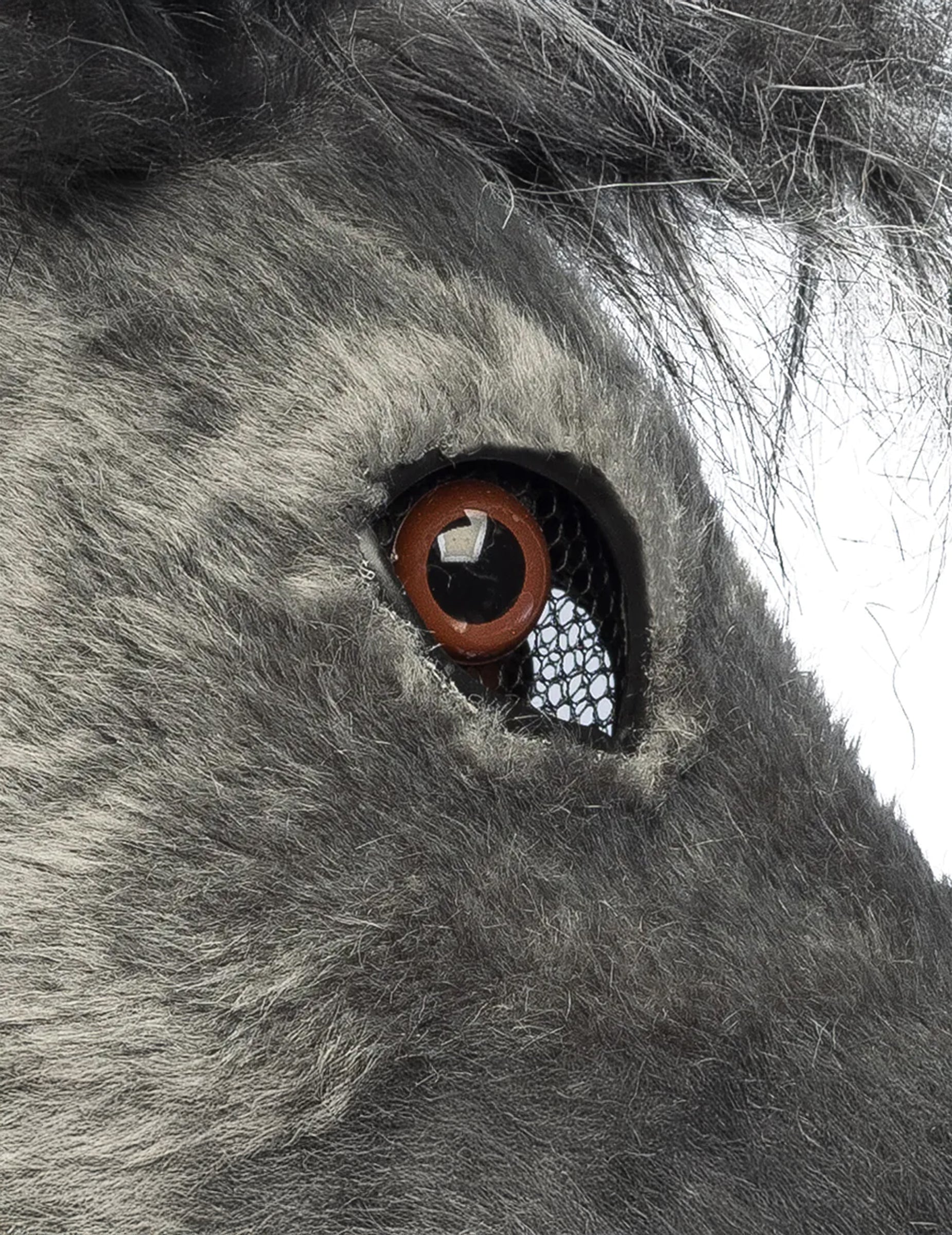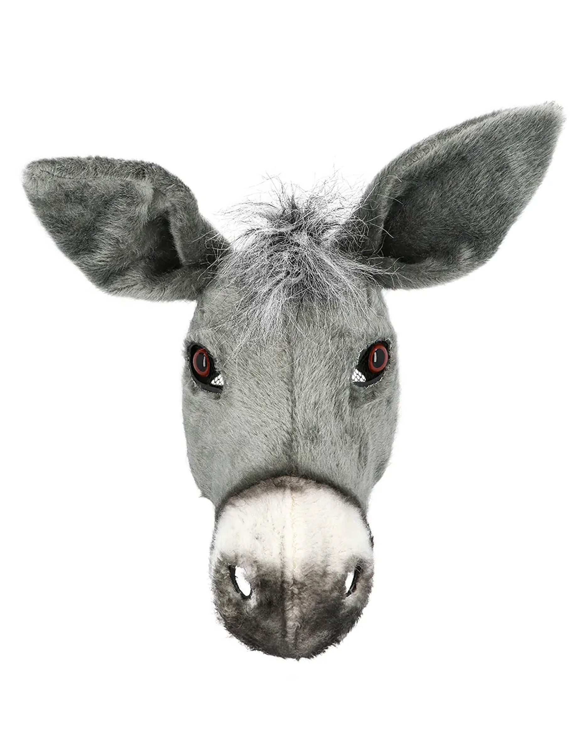 Acest semi-mască din pluș măgar pentru adulți aduce un aspect amuzant și ușor de recunoscut datorită formei sale alungite și a urechilor mari, flexibile. Acoperit complet cu pluș moale, prezintă un bot deschis la culoare, foarte vizibil, și detalii atent lucrate care îi accentuează aspectul animalier. O zonă din plasă poziționată în fața ochilor permite o vizibilitate confortabilă, păstrând în același timp efectul de mască completă. Ușor și comod de purtat, oferă instantaneu o identitate de măgar pentru carnaval sau petrecerile tematice cu costume de animale.