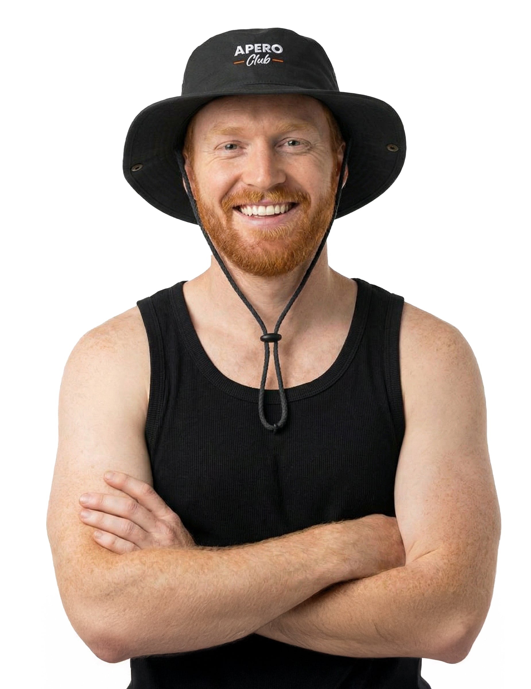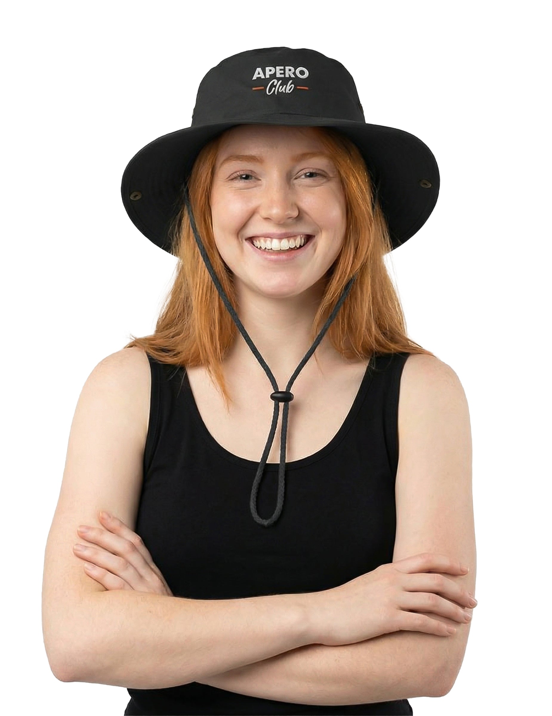 Acest Pălărie cu șnur negru Apero Club aduce o notă cool datorită formei sale flexibile și culorii sale sobre. Logo-ul „Apero Club” adaugă o notă convivială care se potrivește perfect unei atmosfere relaxate între prieteni. Cu șnurul său reglabil, rămâne bine fixat și se poartă ușor la petreceri estivale, momente în aer liber sau pur și simplu pentru a completa un look lejer.