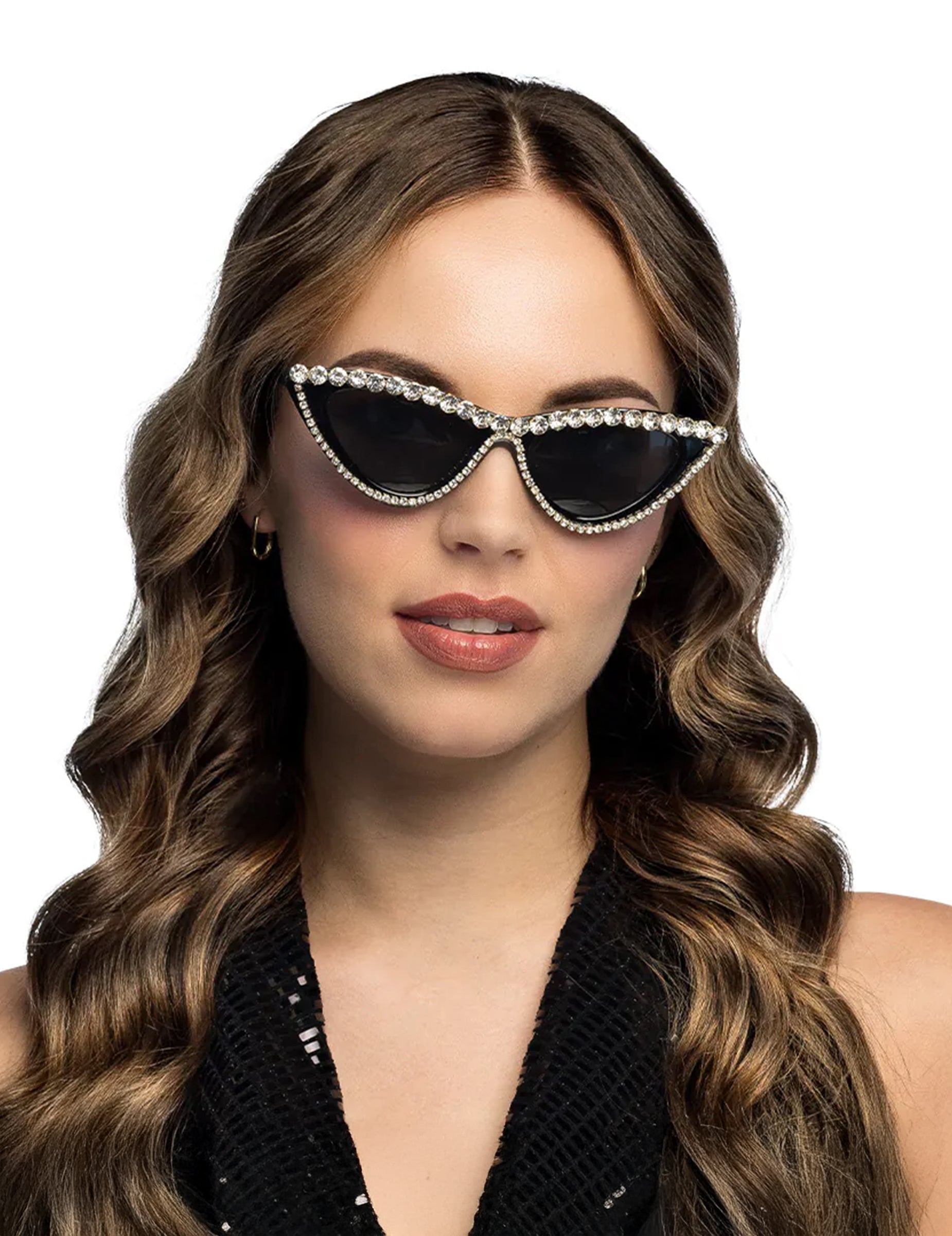 Ochelarii glamour cu strasuri pentru adulți oferă un aspect rafinat datorită conturului lor sclipitor și formei alungite. Strasurile evidențiază întreaga ramă și pun în valoare lentilele închise la culoare, creând un contrast elegant. Ei adaugă imediat o notă festivă oricărei ținute. Perfecți pentru o petrecere costumata, o aniversare sau orice moment în care vrei să adopți un stil remarcabil.