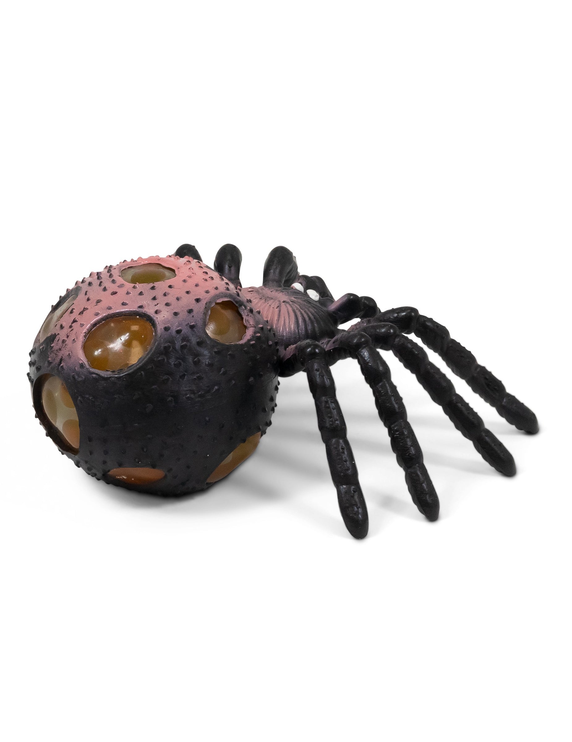 Această păianjen moale cu bile este realizată dintr-un material flexibil care se deformează ușor sub mână. Are un corp bombat, umplut cu bile mici care devin vizibile atunci când o strângi. Picioarele subțiri și textura ușor granulată îi accentuează aspectul.