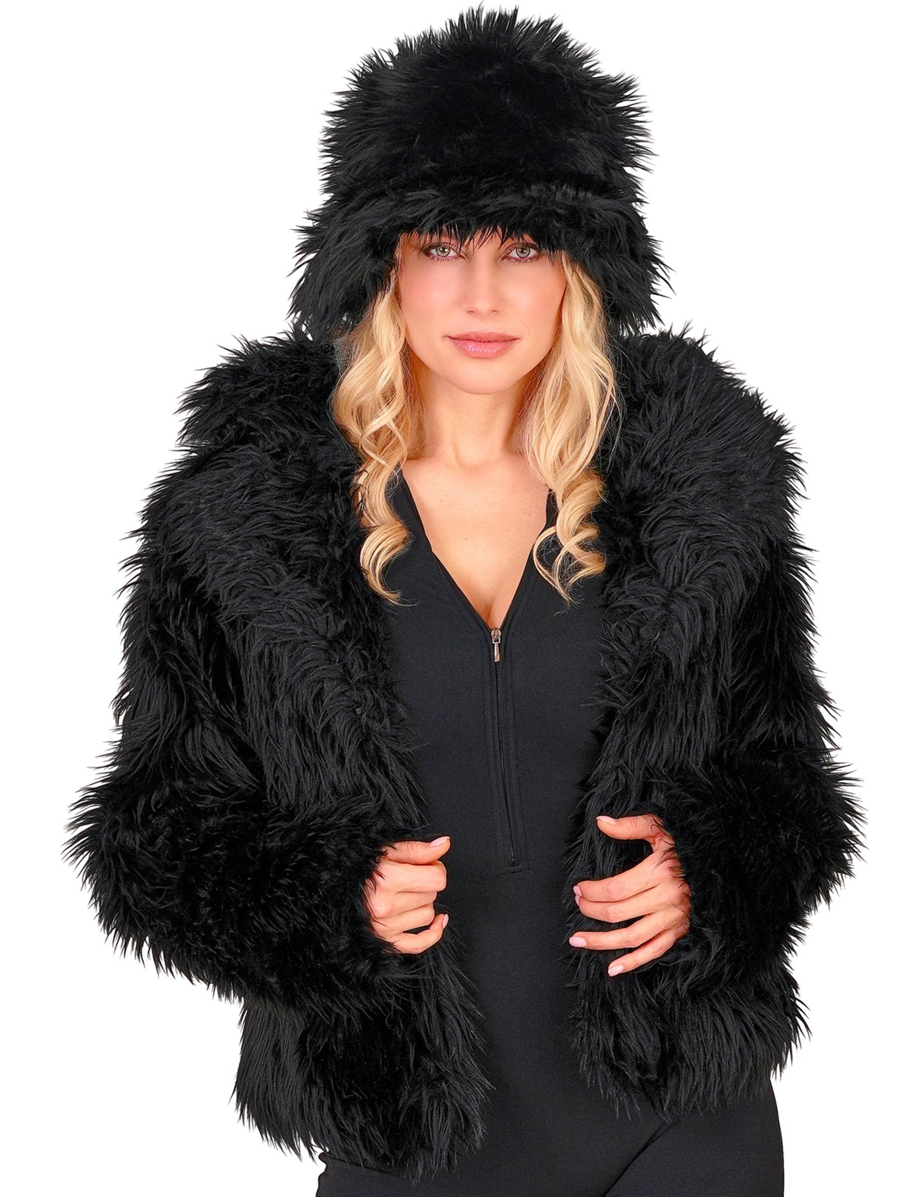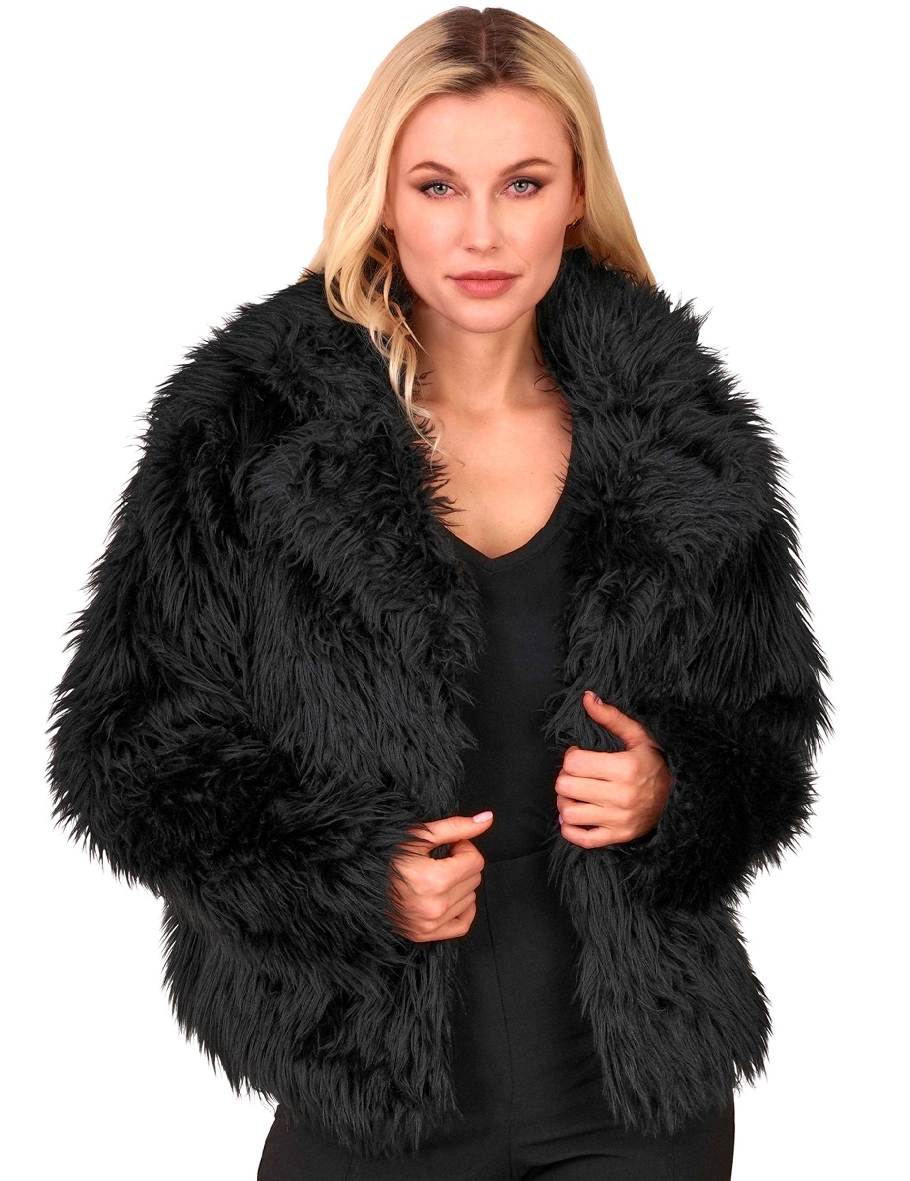 Haina neagră din blană artificială pentru adulți este potrivită pentru Carnaval, o noapte disco, THE Anul Nou sau o petrecere tematică în costume.